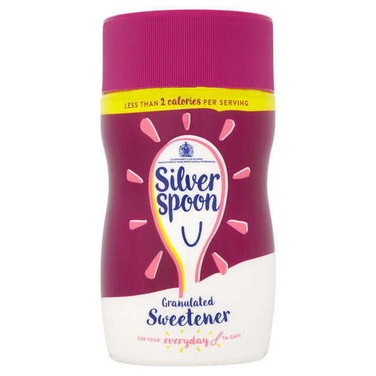 Every spoonful of sweetener has a delicious sweet taste with less than 2 calories. It's ideal for sweetening tea, coffee, and other hot drinks. A spoonful of sweetener has the equivalent sweetness of a spoonful of sugar.. Less than 2 calories per serving. Suitable for vegetarians. Silver Spoon.